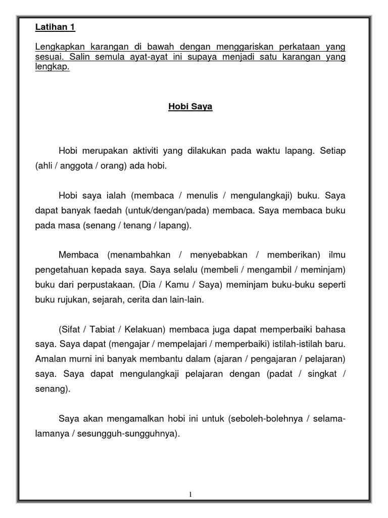 Contoh karangan spm hobi saya di waktu lapang.